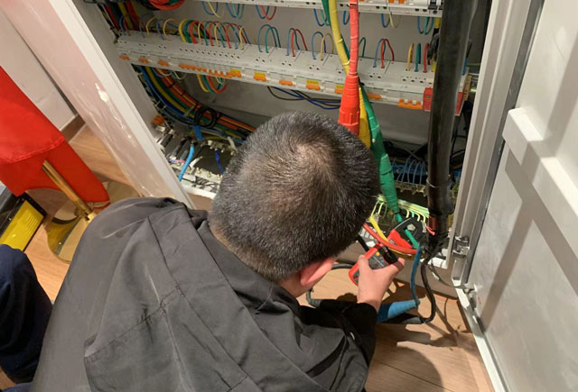 ①直觀檢查配電箱(盤)的設置、材質、安裝質量、柜內(nèi)配線、接線端子連接、接地及防火措施等。
